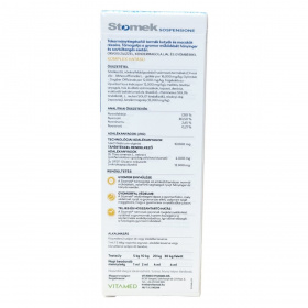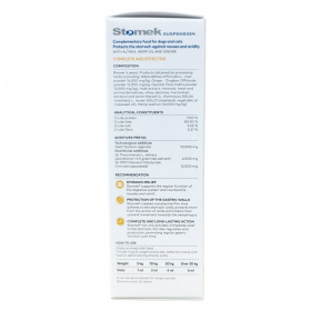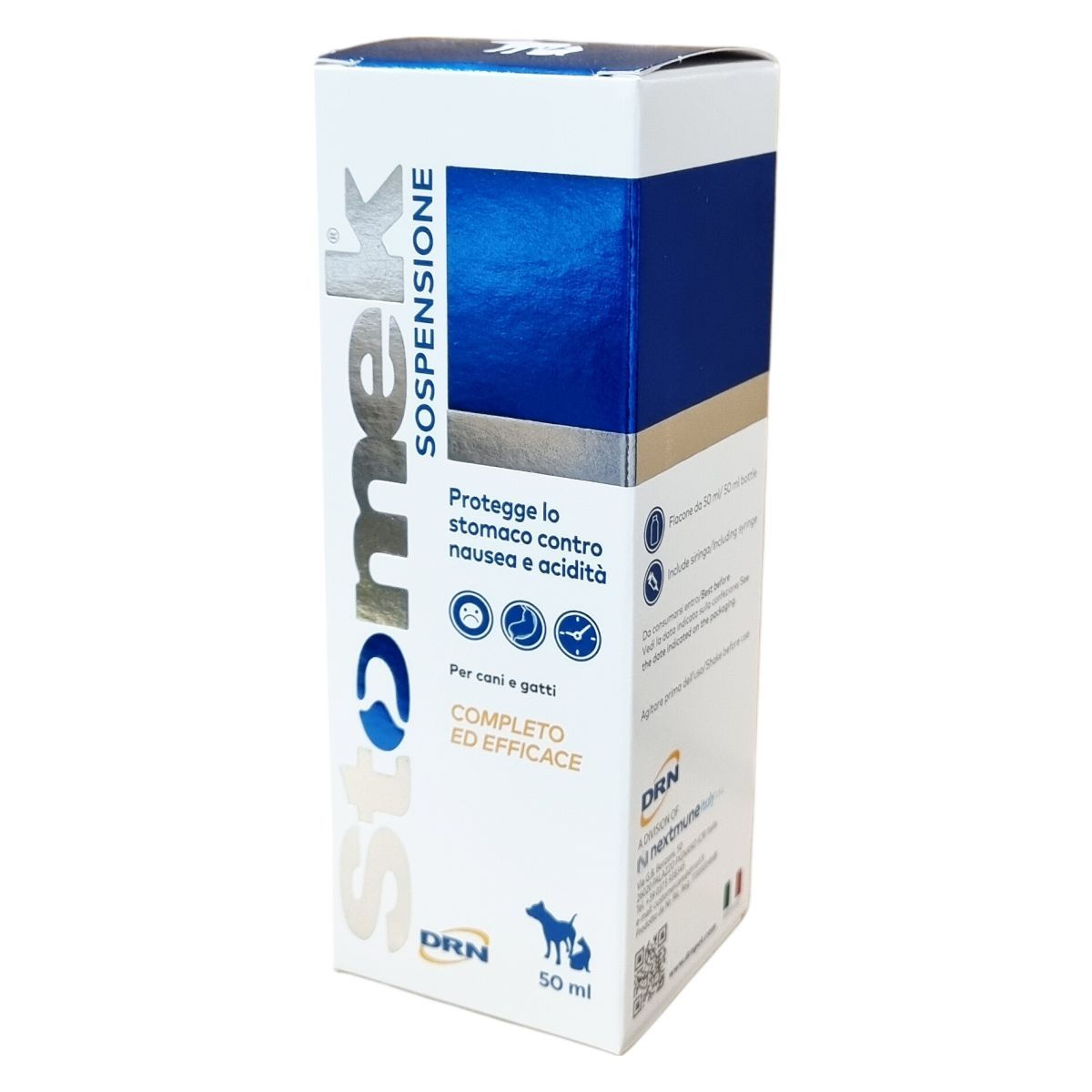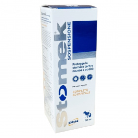A Stomek® egy takarmánykiegészítő, amely kifejezetten kutyák és macskák részére készült, és a gyomor működésének támogatására szolgál. A készítmény összetevői között megtalálható az orvosi ziliz (Althea officinalis L.) gyökér, a gyömbér (Zingiber Officinale) és a fügektaktusz (Opuntia Ficus Indica), valamint kendermagolaj, maláta, ásványi anyagok, hús- és állati származékok, sörelesztő, tejsavó és inaktivált probiotikus baktériumok. A termék úgy fejti ki hatását, hogy védőréteget képez a gyomorfalon, amely megóvhatja a gyomrot a savtúltengéstől és segítheti a savtermelés szabályozását, továbbá támogatja az emésztőrendszer normál működését. A Stomek® napi adagolással, közvetlenül vagy eledelbe keverve adható a kedvenceknek és hosszabb ideig is alkalmazható, figyelembe véve a testtömeg szerint meghatározott adagokat. A termék olasz gyártású, 50 ml-es kiszerelésben kapható, és a használat előtt fel kell rázni.