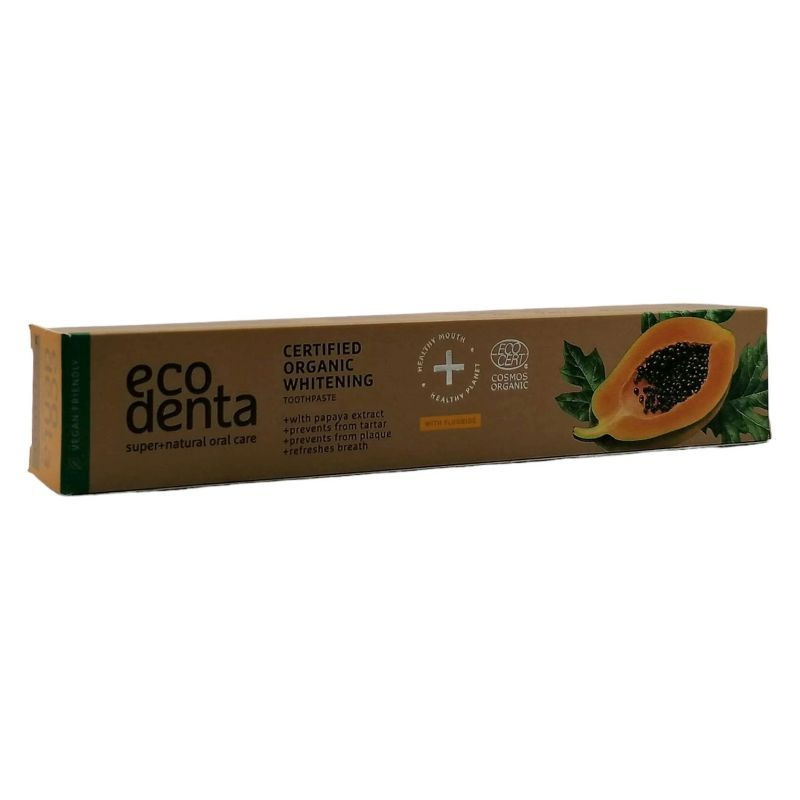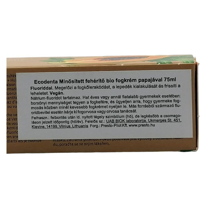 Összetevők: 99% összetevő természetes forrásból,Glycerin, HydratedSilica, Aqua, AloeBarbadensis LeafJuice, CaricaPapaya (Papaya) FruitExtract, Xylitol, CelluloseGum, SodiumCoco-Sulfate, MenthaPiperita (Peppermint) Oil (Limonene), Aroma, SodiumFluoride (1131ppmFŻ), CitricAcid, SodiumHydroxide, PotassiumSorbate, SodiumBenzoate.