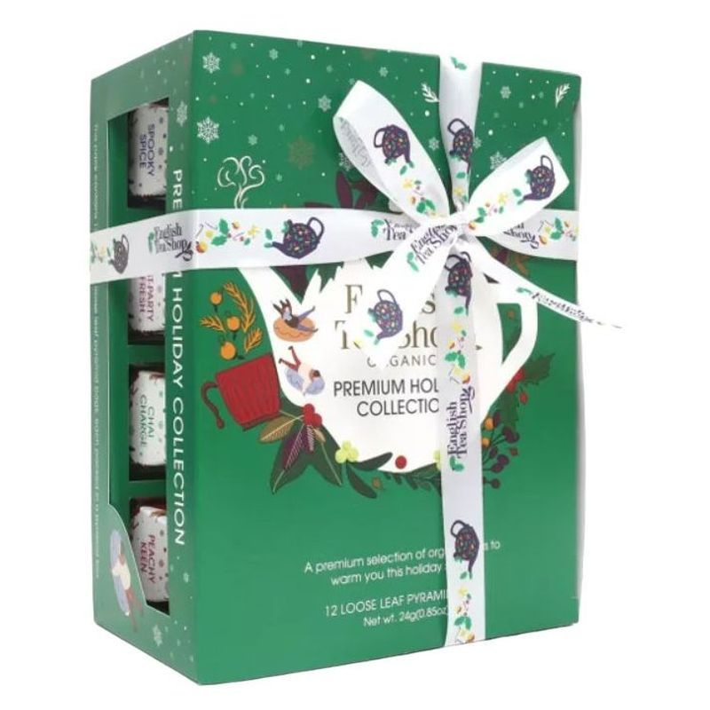 ETS 12 Karácsonyi zöld hóember selyempiramis filteres bio teaválogatás, 4 különleges íz ünnepi díszcsomagolásban.