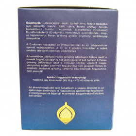 A Panax ginseng adaptogén hatása miatt a termék fogyasztásában 6 hét után szünetet kell tartani! A Panax ginseng befolyással lehet a vércukor szintre, valamint magas vérnyomás esetén a termék fogyasztása nem javasolt! Terhes és szoptató anyáknak ginseng tartalmú készítmények fogyasztása nem javasolt! Az étrend-kiegészítő nem helyettesíti a vegyes étrendet és az egészséges életmódot! A fogyasztó az ajánlott napi fogyasztási mennyiséget ne lépje túl! A terméket kisgyermek elől elzárva kell tartani!