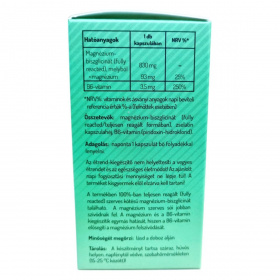 Ez a termék magnézium-biszglicinátot és B6-vitamint tartalmaz, amelyek hozzájárulhatnak a magnézium jobb felszívódásához és a szervezet normál működésének támogatásához.