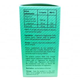 A Flavon Mg + B6 étrend-kiegészítő kapszula magnézium-biszglicinátot és B6-vitamint tartalmaz, amelyek szerves kötésű formában találhatók meg a termékben. A magnézium szerves sói jobban szívódhatnak fel, és a B6-vitamin elősegítheti a magnézium felszívódását. A termék 100%-ban teljesen reagált magnézium-biszglicinátot tartalmaz, amely hozzájárulhat a szervezet normál működésének támogatásához. A termék bio étrendi irányzatba illeszkedik, és fontos, hogy az ajánlott napi mennyiséget ne lépjük túl.