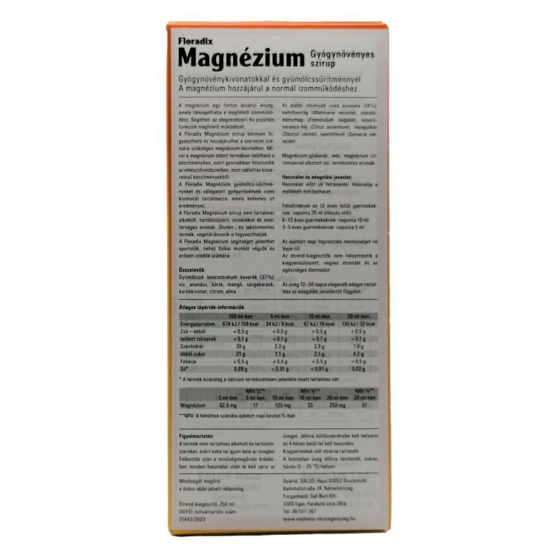 A magnézium szerepet játszik az izomműködés és az idegrendszer normál működésében, valamint hozzájárul a fáradtság csökkentéséhez. A szirup gyorsan felszívódik, így hatása hamar érezhető. Felnőttek és gyermekek számára egyaránt könnyen fogyasztható, hiszen íze kellemes és frissítő.