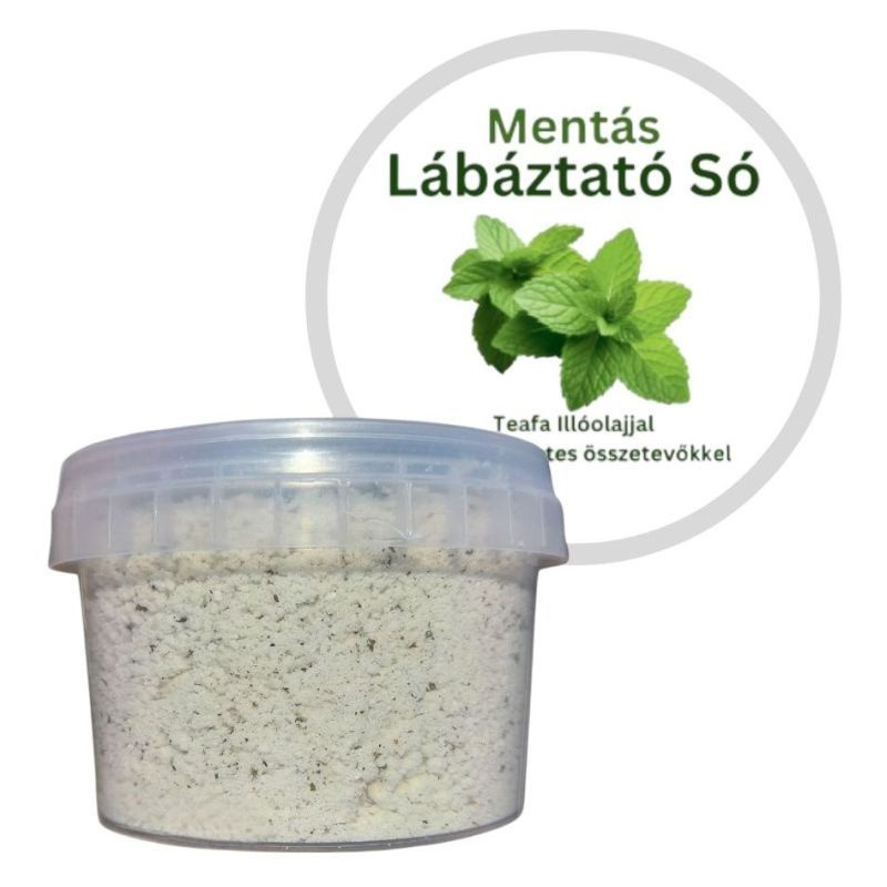 A Mentás Lábáztató Só gyógynövényt, Teafa illóolajat, fertőtlenítésre, bőrpuhításra, bőrápolásra kiválóan alkalmas természetes összetevőket tartalmaz.