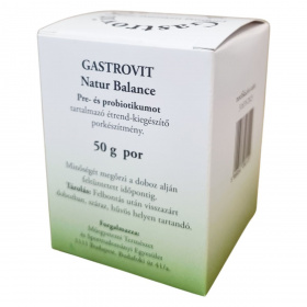 A Gastrovit Natur Balance élelmi rostokat, inulint és élőflórás probiotikumokat tartalmazó étrend-kiegészítő porkészítmény. Hozzájárulhat a bélflóra egyensúlyához. Kiszerelés: 50 g por. Előállítja: Premium Product Kft.