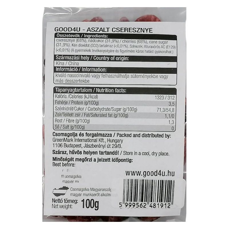 Az aszalt cseresznye tele van vitaminokkal, ásványi anyagokkal és antioxidánsokkal, amelyek segítik a szervezet védekezőképességét. Az aszalás folyamata során a gyümölcs természetes édessége koncentrálódik, így igazán ízletes nassolnivalóvá válik. A cseresznye bővelkedik C-vitaminban, amely hozzájárul az immunrendszer védelméhez, és segít megküzdeni a megfázásos betegségekkel. Ezen kívül a benne található rostok támogatják az emésztést, így a rendszeres fogyasztás hozzájárulhat az egészséges bélflóra fenntartásához.