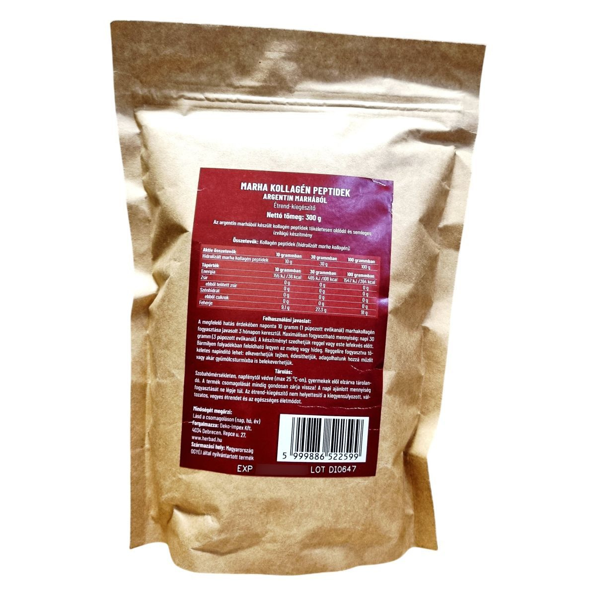 A HerbaD Marha Kollagén Peptidek étrend-kiegészítő argentin marhából származó kollagén peptideket tartalmaz, amelyek kiváló felszívódásúak és ellenőrzött tisztaságúak lehetnek. A termék semleges ízvilágú, így bármilyen folyadékban könnyen oldódhat, legyen az meleg vagy hideg. A napi ajánlott mennyiség 10 gramm, amelyet reggel vagy este lefekvés előtt is fogyaszthatunk. A termék nem helyettesíti a kiegyensúlyozott étrendet és az egészséges életmódot. Tárolása szobahőmérsékleten, napfénytől védve ajánlott.
