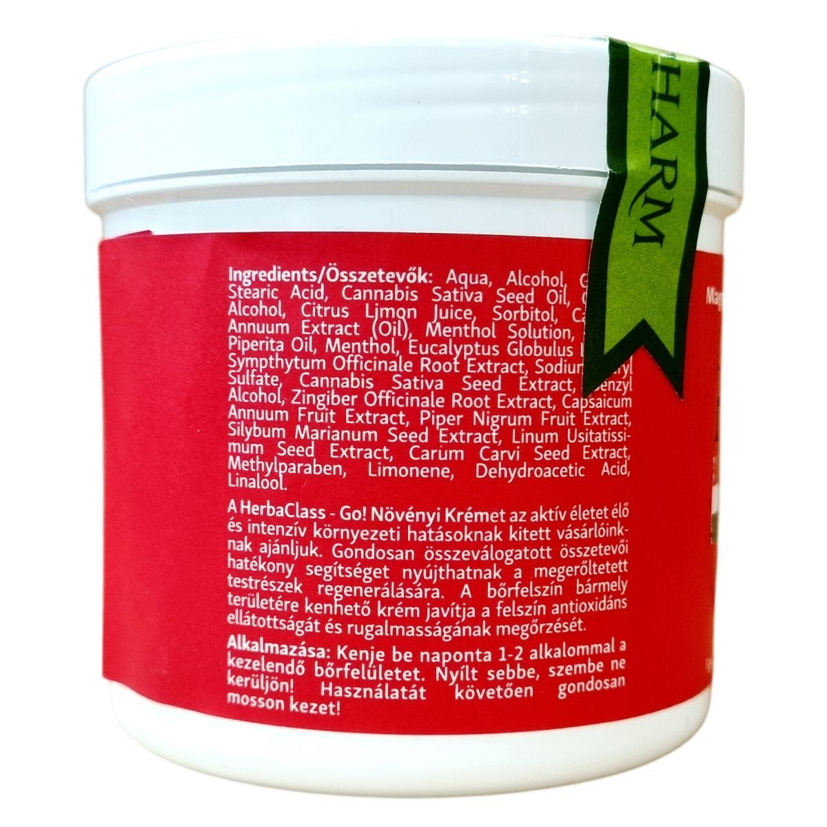 A HerbaClass GO! növényi krémet aktív életet élők és intenzív környezeti hatásoknak kitett vásárlóknak ajánljuk. Összetevői segítik a megerőltetett testrészek regenerálódását, javítják a bőr antioxidáns ellátottságát és elősegítik a rugalmasság megőrzését. A krém kizárólag külsőleg használható és 300 ml-es kiszerelésben érhető el.