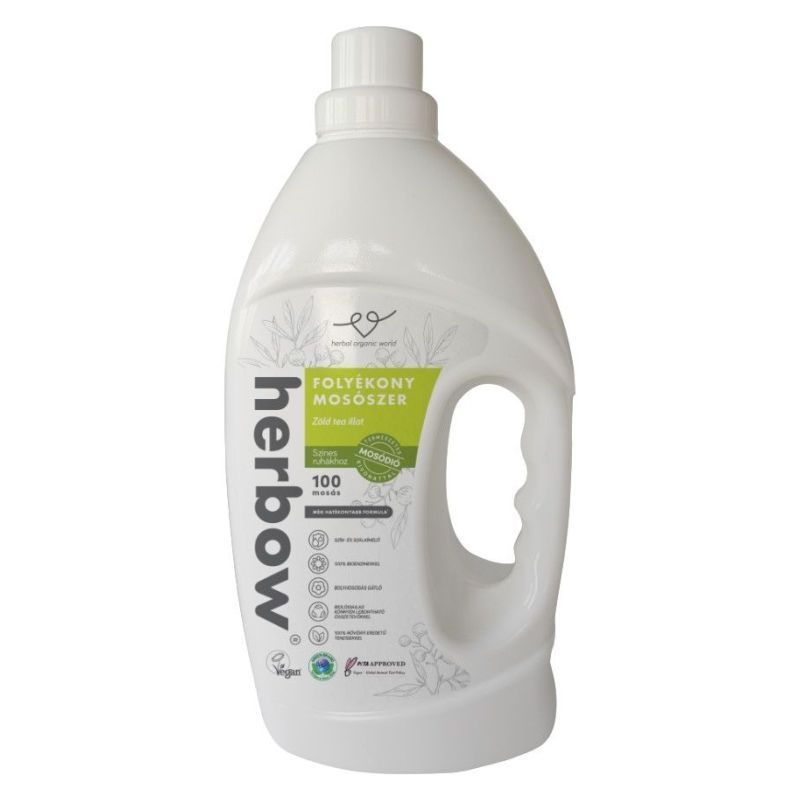 Folyékony mosószer színes ruhákhoz zöld tea illattal.