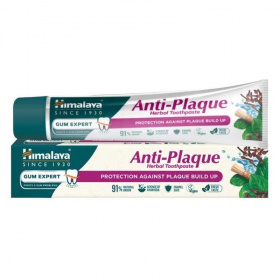 A Himalaya Anti-Plaque lepedékeltávolító fogkrém hatását egy egyedülálló, fahéjból és szegfűszegből, növényi enzimtechnológiával nyert gyógynövényes formula biztosítja, mely csökkenti a lepedékképződést és védelmet nyújt a káros baktériumokkal szemben, így biztosítva teljes körű védelmet a fogaknak. Vegán termék. 91%-ban természetes eredetű összetevőket tartalmaz. Fluoridmentes.