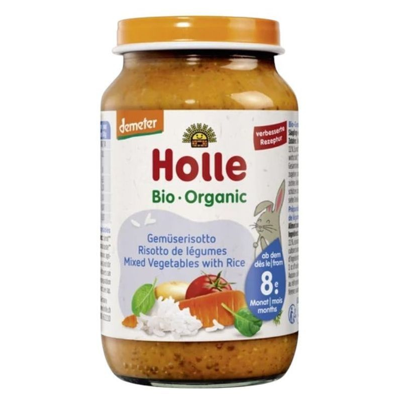 Bio Junior bébiétel Zöldségrizottó Demeter, gluténmentes, hozzáadott só nélkül, állagjavító adalékok nélkül, tojásmentes, tejfehérjementes, 8 hónapos kortól.