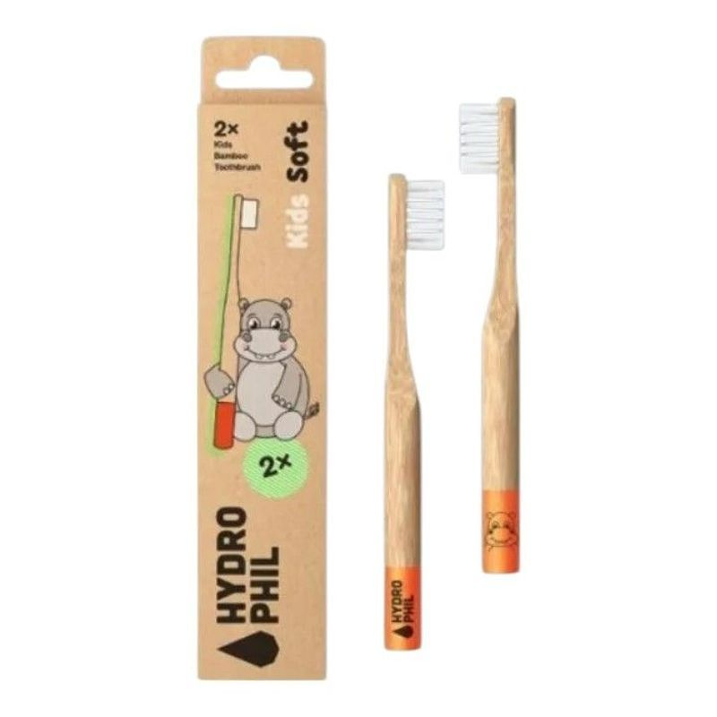 Megújuló erőforrások felhasználásával, 100% természetes bambusz nyéllel, BPA-, és kőolajszármazék mentes puha sörtével készült gyerekfogkefe. Víziló mintával.