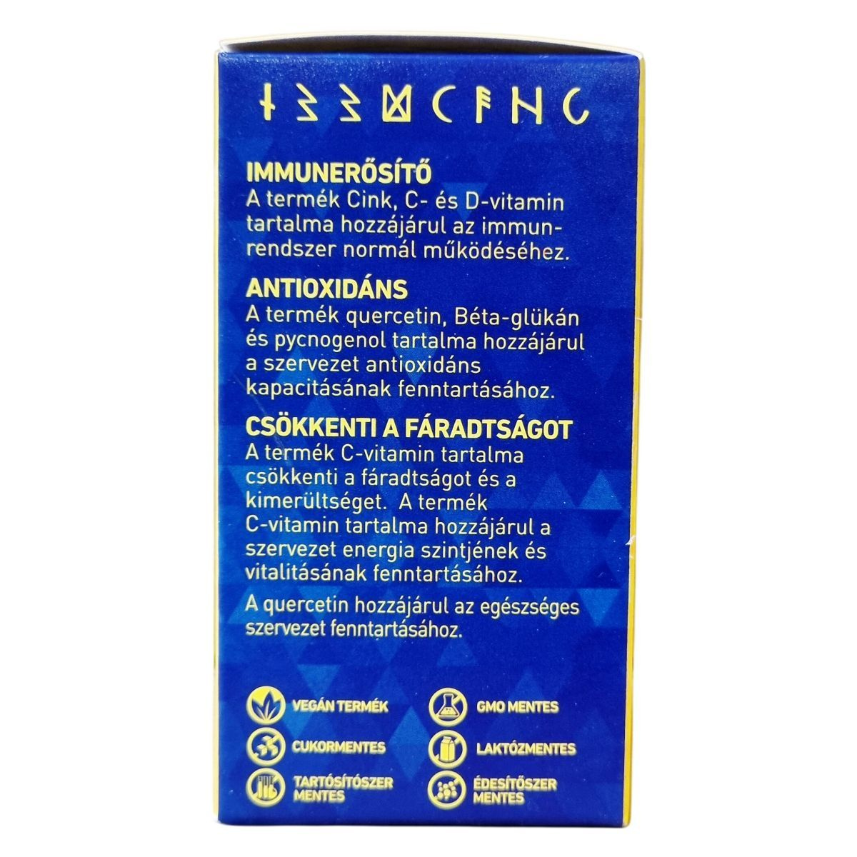 C-vitamin (Na-aszkorbát), Huminsavak, Quercetin, Béta-glükán, Echinacea, Cink (Cink-aszkorbát), NAC (N-Acetil-cisztein), Kurkumin (kurkuma kivonat), D3-vitamin (kolekalciferol), Fenyőkéreg kivonat (pycnogenol), Szelén (Na-szelenit)