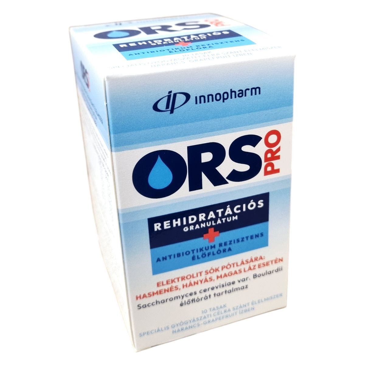 Az Innopharm ORS PRO rehidratációs granulátum a WHO/Unicef ajánlása alapján készített ásványi anyagokat tartalmazó termék, amely a vízben történő feloldás után megfelel az előírt elektrolit sók pótlási mennyiségének és ozmolaritásnak. A termék alkalmazása javasolt hasmenés, például antibiotikum asszociált hasmenés, hányás és magas láz esetén, mivel elektrolit tartalmának köszönhetően hozzájárulhat az elektrolit-háztartás helyreállításához. A granulátum enyhén sós ízű, narancs-grapefruit ízesítésű, és 10 db tasak kiszerelésben érhető el. A Saccharomyces cerevisiae var. boulardii élőflórait tartalmazó készítmény speciális gyógyászati célra szánt élelmiszer, amely az elektrolitok mellett probiotikus élőflórát is biztosít.