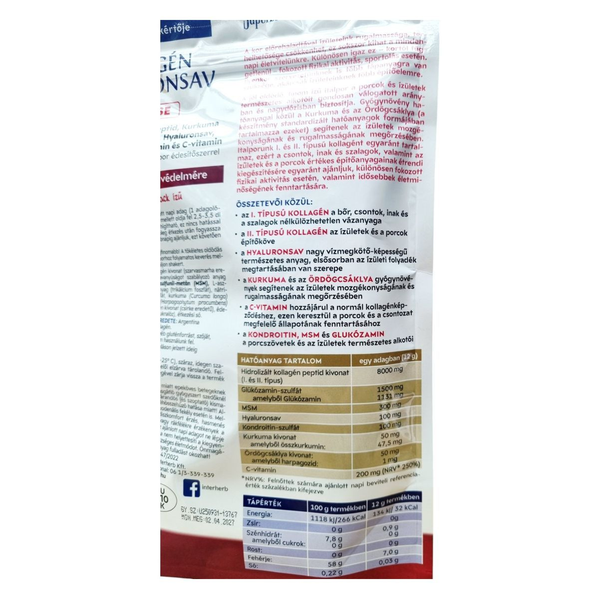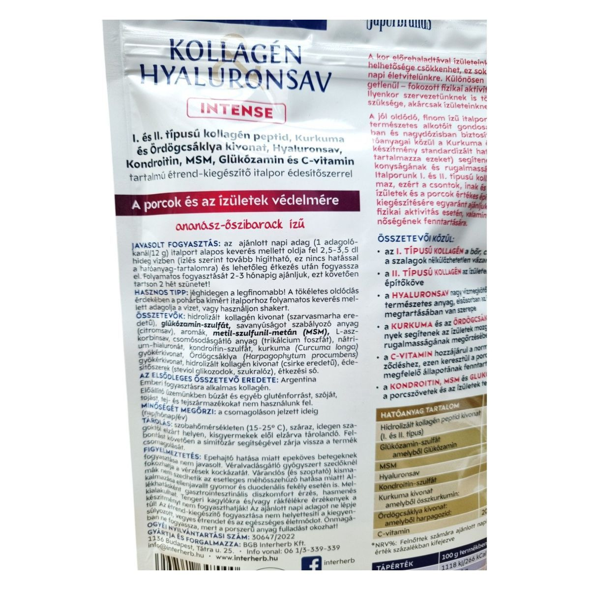 A kor előrehaladtával ízületeink terhelhetősége csökkenhet, ami kihathat a napi életvitelünkre. Az INTERHERB KOLLAGÉN & HYALURONSAV INTENSE italpor tudományosan igazolt arányban tartalmazza az ízületek egészségéhez szükséges hatóanyagokat. Az I. és II. típusú kollagén, hyaluronsav, kurkuma és ördögcsáklya kivonatok segíthetnek az ízületek mozgékonyságának és rugalmasságának megőrzésében. A C-vitamin hozzájárulhat a normál kollagénképződéshez, ezen keresztül a porcok és a csontozat megfelelő állapotának fenntartásához. A termék ananász-őszibarack ízű, és jéghidegen a legfinomabb.