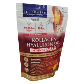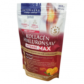 Az idő előrehaladtával ízületeink rugalmassága és terhelhetősége csökkenhet, illetve fokozott fizikai aktivitás vagy sport esetén szervezetünknek több tápanyagra lehet szüksége. Az INTERHERB Kollagén & Hyaluronsav INTENSE MAX italpor jól oldódó, kellemes ízű, narancs-koktél aromájú készítmény, amely emelt dózisban biztosítja a porcok és ízületek természetes alkotóit, beleértve ötféle kollagént (I., II., III., V. és X. típus), továbbá kurkuma- és ördögcsáklya kivonatot, melyek segíthetik az ízületek mozgékonyságának és rugalmasságának megőrzését. A tojás héj membrán természetes kollagénpeptidek értékes forrása, míg a hyaluronsav a vízmegkötő képessége révén hozzájárulhat az ízületi folyadék megtartásához. A C-vitamin támogatja a normál kollagénképződést és ezzel a porcok, csontrendszer megfelelő állapotát, míg a kondroitin, MSM és glükózamin a porcszövetek és ízületek természetes alkotóiként funkcionálnak. A termék természetes módon glutén- és laktózmentes, valamint cukor-, színezék- és tartósítószer-mentes. Többek között ezért ajánlott különösen idősebbeknek és fokozott fizikai aktivitást végzőknek az ízületek és porcok étrend-kiegészítésére.