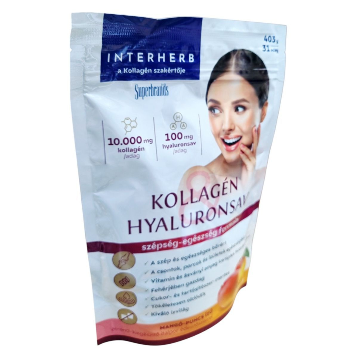 Az INTERHERB KOLLAGÉN & HYALURONSAV mangó-puncs ízű étrend-kiegészítő italpor célzottan válogatott szépségvitaminokkal és ásványi anyagokkal gazdagítva készült. A termék 10 000 mg hidrolizált szarvasmarha eredetű kollagént és 100 mg hyaluronsavat tartalmaz adagonként, amelyek hozzájárulhatnak a bőr, a csontok, porcok és ízületek egészségének támogatásához. A termék cukor- és tartósítószer-mentes, valamint természetes módon glutén- és laktózmentes. A vitaminok, mint az A-, C-, D-, E-vitaminok, valamint a biotin, szelén és króm, hozzájárulhatnak a bőr normál állapotának fenntartásához, a sejtek oxidatív stresszel szembeni védelméhez és az egészséges csontozat fenntartásához. Az italpor könnyen oldódik hideg vízben is, és kellemes ízvilágot kínál.
