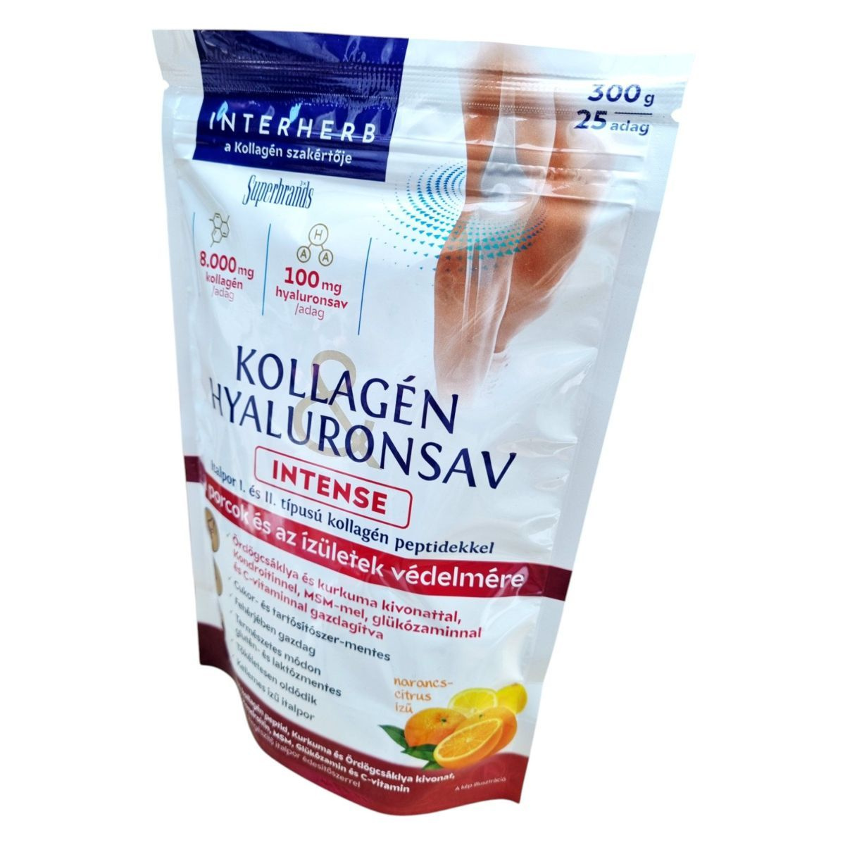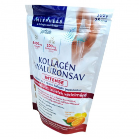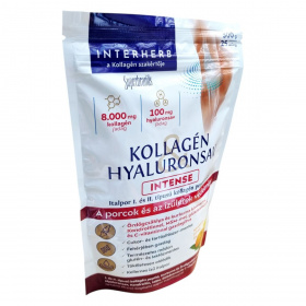 Az INTERHERB KOLLAGÉN & HYALURONSAV INTENSE italpor egy speciálisan összeállított étrend-kiegészítő, amely I. és II. típusú kollagén peptideket, hyaluronsavat, kurkuma és ördögcsáklya kivonatot, valamint C-vitamint tartalmaz. Ezek az összetevők hozzájárulhatnak az ízületek és porcok védelméhez, különösen a kor előrehaladtával vagy fokozott fizikai aktivitás esetén. Az italpor narancs-citrus ízű, cukor- és tartósítószer-mentes, és természetes módon glutén- és laktózmentes. Az ajánlott napi adag 12 g, amelyet hideg vízben kell feloldani és étkezés után fogyasztani. A termék folyamatos fogyasztását 2-3 hónapig ajánlják, majd 2-3 hónap szünet javasolt.
