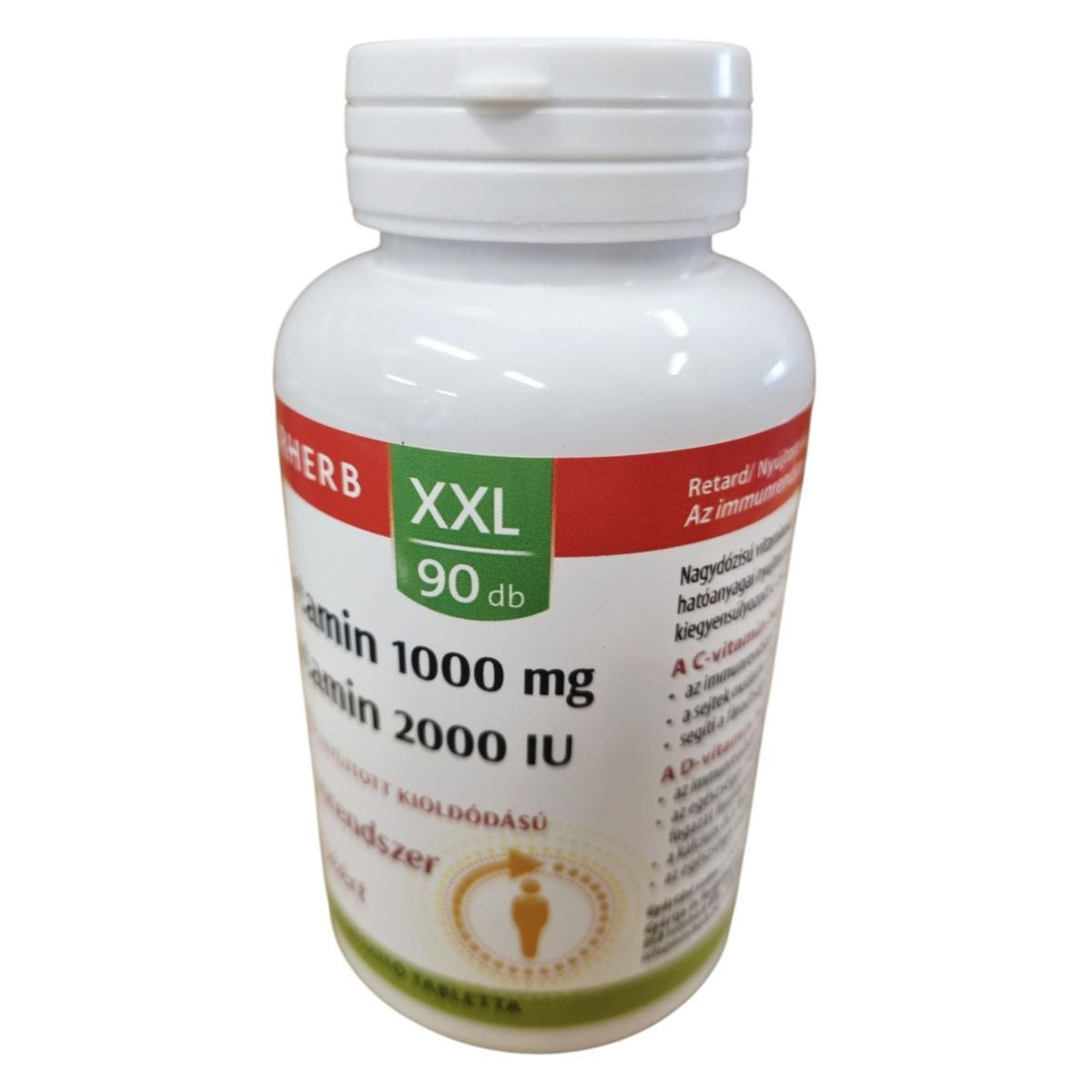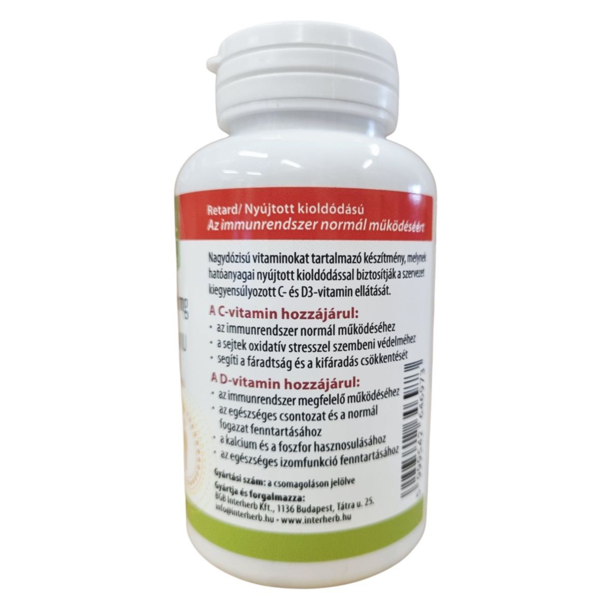 Az INTERHERB XXL étrend-kiegészítő tabletta nagydózisú C- és D3-vitamint tartalmaz, amelyek nyújtott kioldódású formulája hozzájárulhat a szervezet kiegyensúlyozott vitaminellátásához. A C-vitamin segíthet az immunrendszer normál működésében, a sejtek oxidatív stresszel szembeni védelmében, valamint a fáradtság csökkentésében. A D-vitamin támogathatja az egészséges csontozat és fogazat fenntartását, valamint a kalcium és foszfor hasznosulását. A termék fogyasztása nem helyettesíti a kiegyensúlyozott étrendet és az egészséges életmódot.