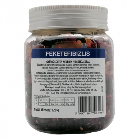Szárított hibiszkuszvirág, mazsola, szárított csipkehús, fekete berkenye, szárított rózsaszirom, szárított feketeribizli bogyó, aromakészítmény. A termék nyomokban zellert és mustárt tartalmazhat. Felhasználási javaslat: A tasak tartalma kb. 30 csésze teaital elkészítéséhez elegendő. Tegyünk egy csésze (2 dl) forró vízbe 1 púpozott teáskanálnyi gyümölcsteát, fedjük be a csészét, és 5 percig hagyjuk ázni. A kész italt szűrjük le, és tetszés szerint ízesítve, forrón vagy hűtve - jeges teaként - is fogyaszthatjuk.Tárolása:száraz,hűvös,fénytől védett helyen.