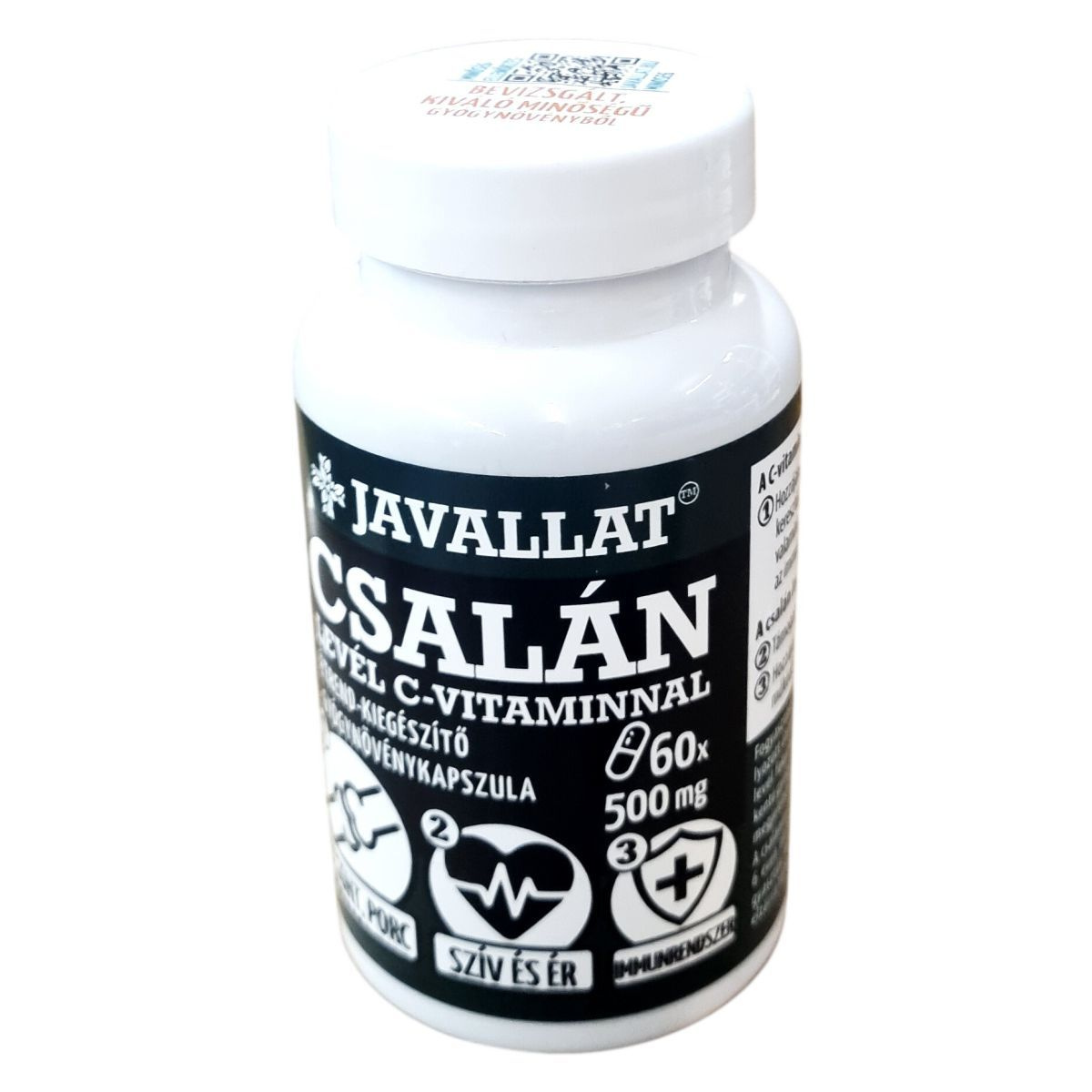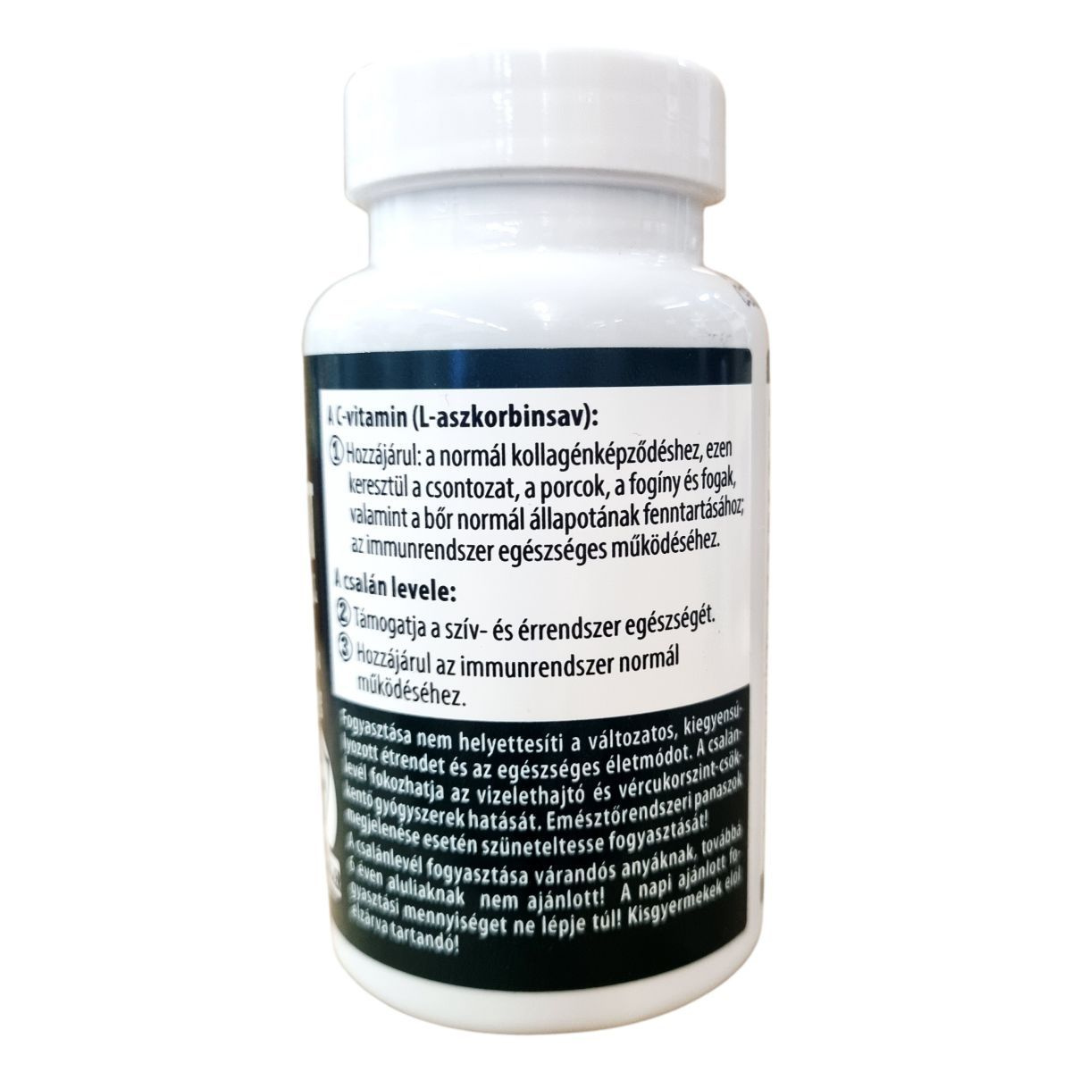 A C-vitamin hozzájárulhat a normál kollagénképződéshez, amely révén támogathatja a csontozat, porcok, fogíny, fogak és a bőr egészséges állapotát. Továbbá az immunrendszer egészséges működését is segítheti. A csalán levele támogatja a szív- és érrendszer egészségét és hozzájárulhat az immunrendszer normál működéséhez. A kapszulák fogyasztása bő folyadékkal javasolt, vagy a kapszula tartalma elkészíthető teaként is az útmutatás szerint. A termék kapszulánként 450 mg csalánlevél szuperfinom instant gyógynövényport és 50 mg L-aszkorbinsavat tartalmaz, amely a felnőttek számára ajánlott napi C-vitamin bevitel 250%-át jelenti.