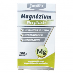 A JutaVit Magnézium-biszglicinát egy magnézium tartalmú étrend-kiegészítő készítmény, amely kizárólag szerves kötésű, teljesen elreagált kelát formájú magnézium-biszglicinátot tartalmaz. A termék színezékmentes, ami hozzájárulhat az idegrendszer megfelelő működéséhez és a normál pszichológiai funkciók fenntartásához. Emellett támogathatja a fáradtság és kifáradás csökkentését, részt vehet a normál energiatermelő anyagcsere-folyamatokban, valamint hozzájárulhat a normál csontozat és fogazat fenntartásához. A kapszulák zselatinból készülnek, és csomósodást gátló anyagok is jelen vannak a termékben. A készítmény megbízható minőségét a Superbrands tanúsítja.