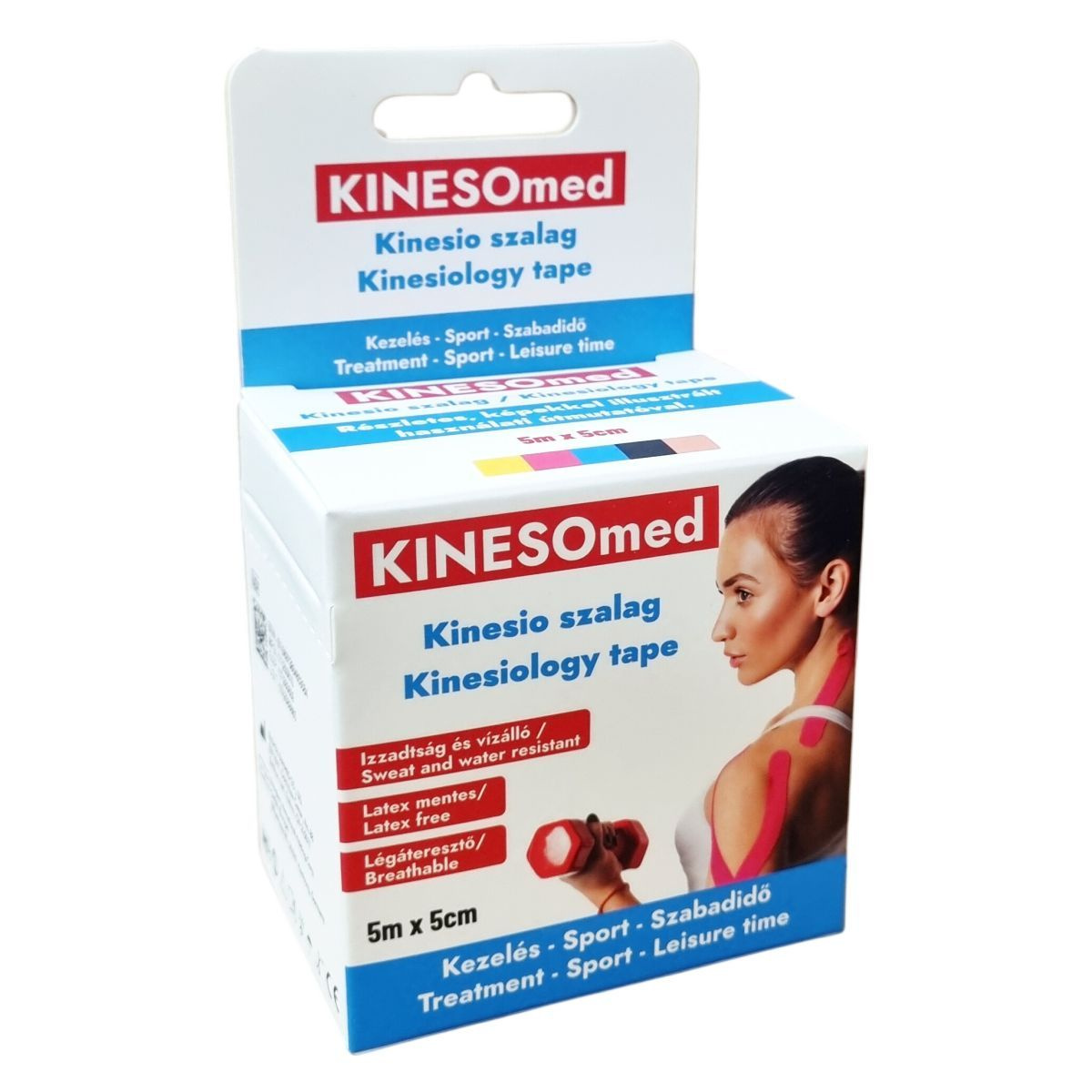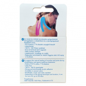 A KINESOmed kineziológiai szalag erős, bőrbarát akril ragasztóval rendelkezik, és 140-160%-ban nyújtható. Légáteresztő, izzadság- és vízálló tulajdonságú, amely lehetővé teszi a ragasztott felület akár 4-8 napos viselését a ragasztási technikától és helytől függően. Több színben elérhető, így alkalmazkodik a felhasználó igényeihez, miközben sport és szabadidős tevékenységek során is hatékony támogatást nyújt.