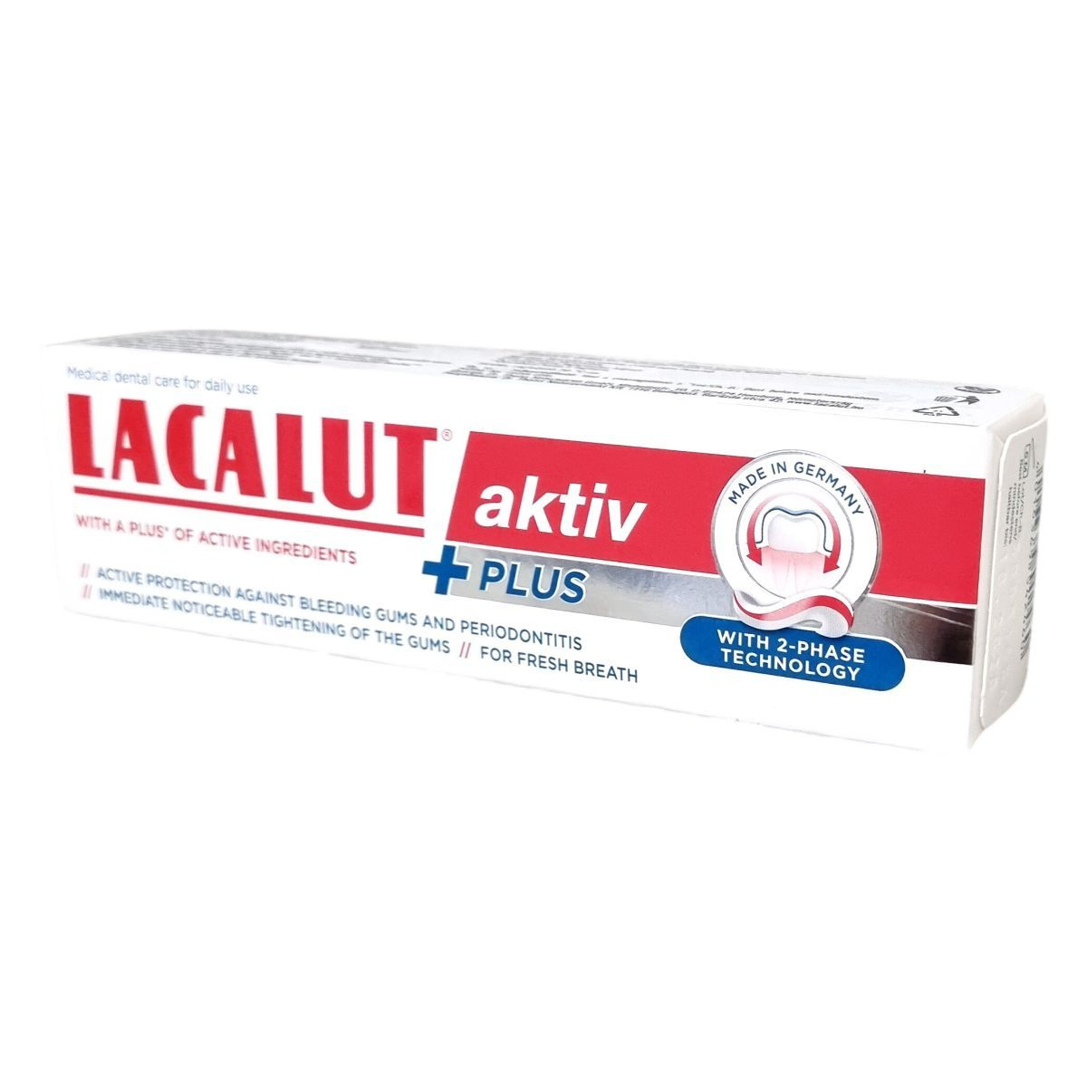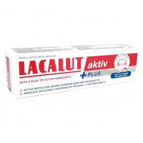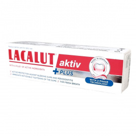 A Lacalut aktiv PLUS kétfázisú technológiával készült fogkrém, amely magasabb koncentrációban tartalmaz aktív hatóanyagokat a fogínyvédelem és a fogzománc erősítése érdekében. A fehér fázis azonnal feszesíti és erősíti a fogínyt, míg a piros fázis hatékonyan küzd a rossz lehelet ellen és friss leheletet biztosít. A termék fluoridot tartalmaz a fogszuvasodás elleni védelem érdekében, miközben a hidroxiapatit eljárással remineralizálja és keményíti a fogzománcot. Közepes abrazivitású, így mindennapi fogápolásra alkalmas felnőttek és 12 éves kor feletti gyermekek számára.