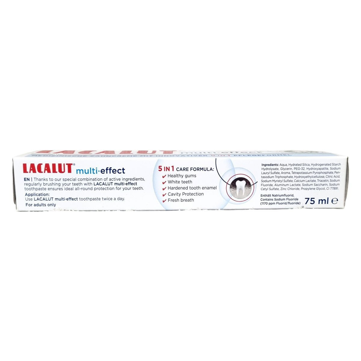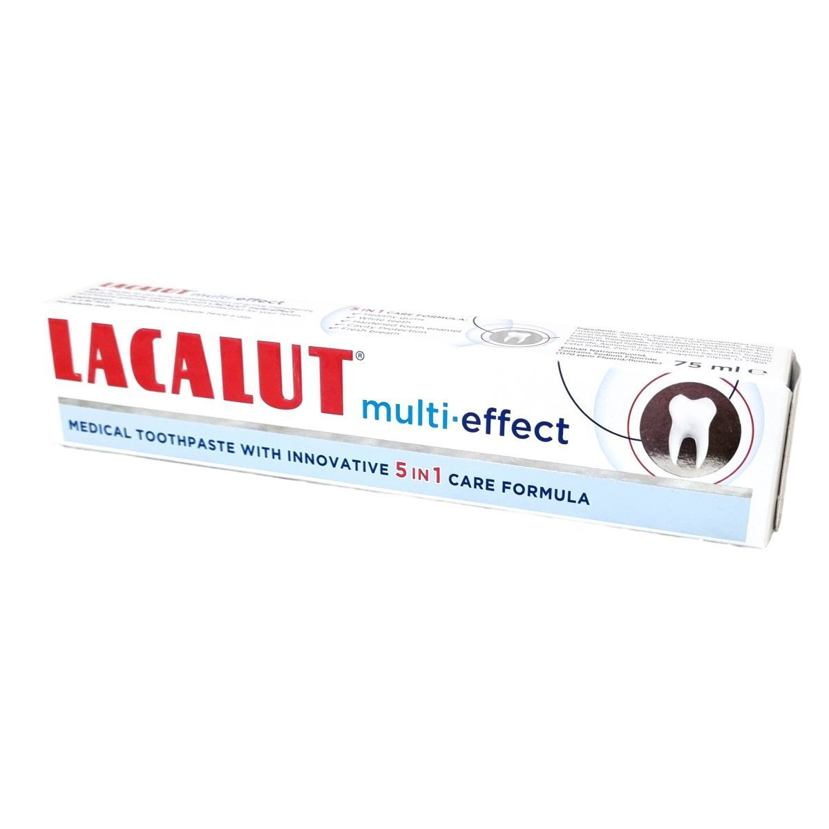 A Lacalut multi-effect fogkrém hatékony 5 az 1-ben formulával segíti elő az egészséges fogínyt, a fehér fogakat, a fogzománc erősítését, a fogszuvasodás elleni védelmet és a friss leheletet.