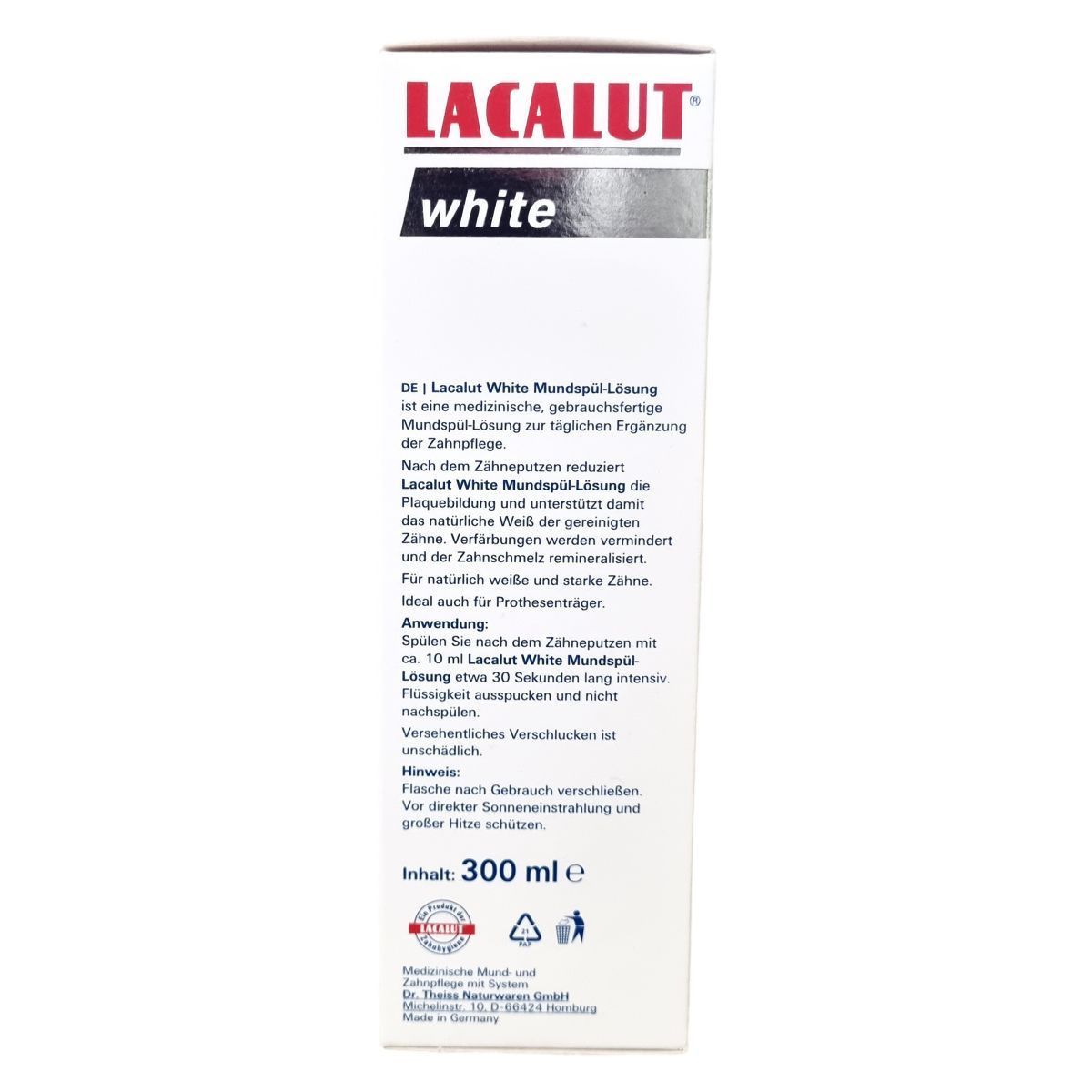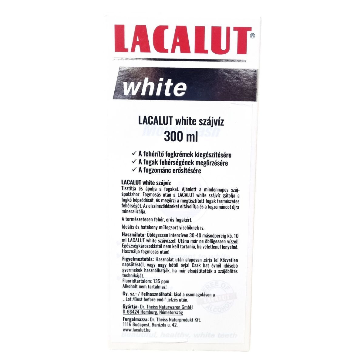 A LACALUT white szájvíz kiegészíti a fogfehérítő kezelést, erősíti a fogzománcot, és segít megőrizni a fogak természetes fehérségét. Hatékonyan tisztít és ápol, ugyanakkor csökkenti a fogkő képződését.