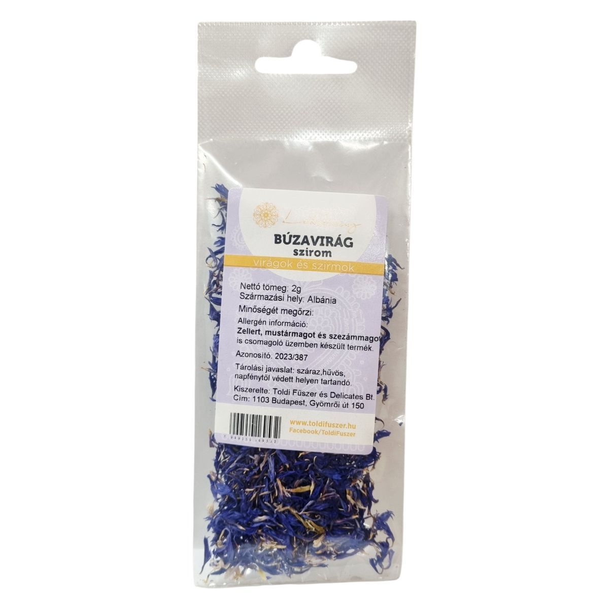 A termék nettó tömege 2 gramm, és Albániából származik. Kiszerelését a Toldi Fűszer és Delicates Bt. végzi, amelynek székhelye Budapest, Gyömrői út 150. Fontos a helyes tárolás, a terméket száraz, hűvös és napfénytől védett környezetben ajánlott tartani a minőség megőrzése érdekében. A termék használata során figyelembe kell venni, hogy olyan üzemben készült, ahol zellert, mustármagot és szezámmagot is csomagolnak, ami allergén szempontból jelentős lehet.