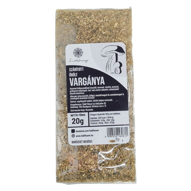 Kóstolja meg ezt a különleges gombafűszert! A vargányagomba fűszer gazdag ízével és illatával feldobja a legegyszerűbb ételeket is. Kiválóan alkalmazható levesekhez, pörköltekhez, vagy akár tésztás ételekhez is. A gomba szárítás során megőrzi tápanyagait, így nemcsak ízletes, hanem egészséges választás is. Használja bátran kreatívan, és adja meg az ételeknek azt a különleges ízt, amit csak a vargányagomba fűszer tud nyújtani! Élvezze a főzés örömét ezzel a különleges hozzávalóval!