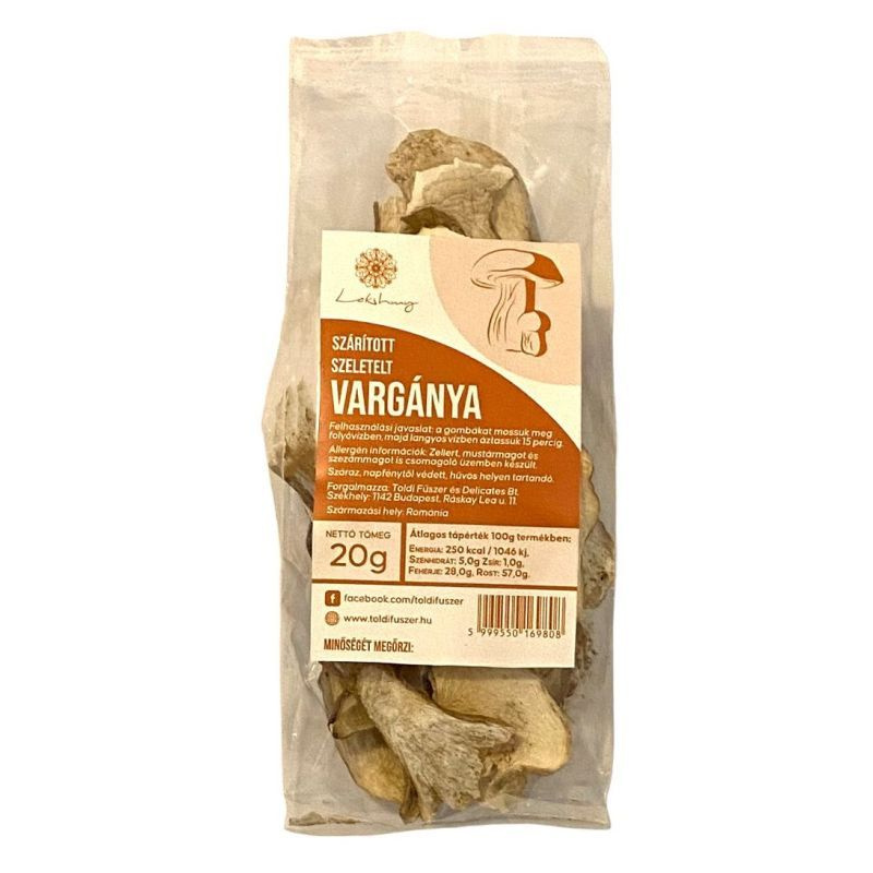 Fedezd fel a szárított, szeletelt vargányát, amely ízletes kiegészítője lehet leveseknek, szószoknak és húsételeknek. Könnyen felhasználható, csak áztasd meleg vízben 15 percig, és máris élvezheted gazdag ízét!