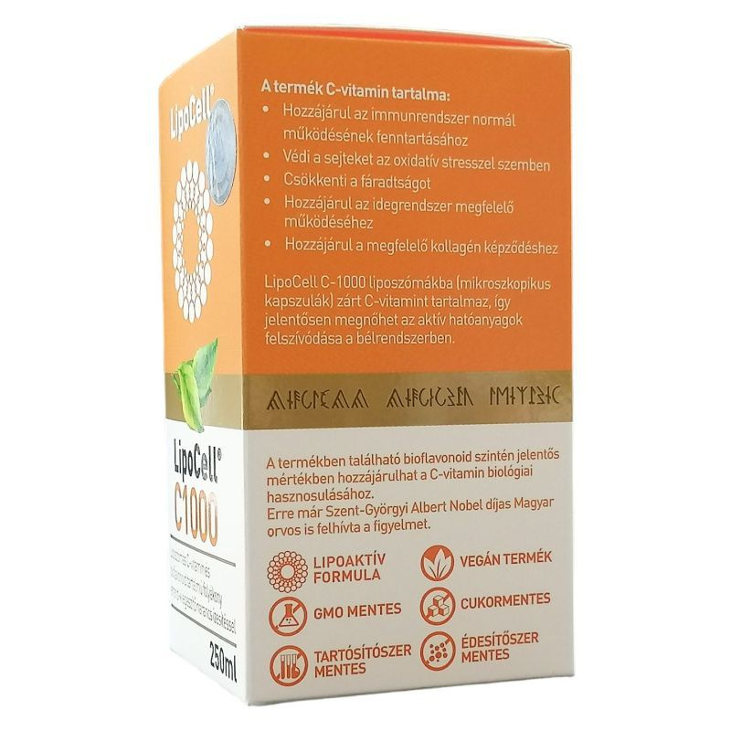 A termék C-vitamin tartalma hozzájárul az immunrendszer normál működéséhez. Védi a sejteket az oxidatív stresszel szemben. Csökkenti a fáradtságot. Hozzájárul az idegrendszer megfelelő működéséhez. Hozzájárul a megfelelő kollagén képződéshez. LipoCell C-vitamin liposzómákba (mikroszkopikus kapszulák) zárt C-vitamint tartalmaz, így jelentosen megnohet az aktív hatóanyagok felszívódása a bélrendszerben. A termékben található bioflavonoid szintén jelentos mértékben hozzájárulhat a C-vitamin biológiai hasznosulásához, melyre már Szent-Györgyi Albert Nobel-díjas magyar orvos is felhívta a figyelmet.