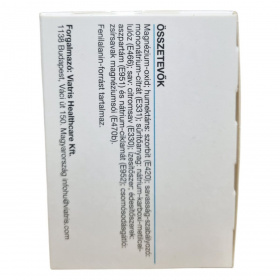 Magnézium-oxid; humektáns: szorbit (E420); savasság-szabályozó: mononátrium-citrát (E331); sűrítőanyag: nátrium-karboxi-metil-cellulóz (E466); sav: citromsav (E330); ízesítőszer; édesítőszerek: aszpartám (E951) és nátrium-ciklamát (E952); csomósodást gátló anyag: zsírsavak magnéziumsói (E470b).