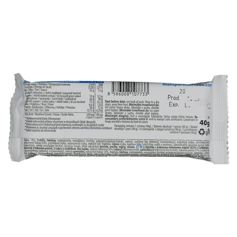 Összetevők: 30% fehérje (szójafehérje -izolátum, savófehérje -koncentrátum), kakaó jegesedés 21% (növényi olaj /pálma kernel, pálma, shea /, savópor, 14% -os kakaó, fruktóz, laktóz, maltodextrin, emulgeáló szerek /lecitinek, poliglicerolerin Policinoleate/, ízesítők), növényi zsír (pálma, shea), kukoricaliszt, burgonyakeményítő, 5,4%-os kakaó, hajdina liszt, amarant liszt, repeseolaj, fruktóz, szója liszt, tenyésztő szerek (nátrium- és ammónium -karbonátok), Sűrítő (guargumi), édesítőszer (szukralóz), ízesítés, emulgeálószer (lecitinek), folsav. Tartalmazhat mogyorót, dióféléket, tojást és szezámot.