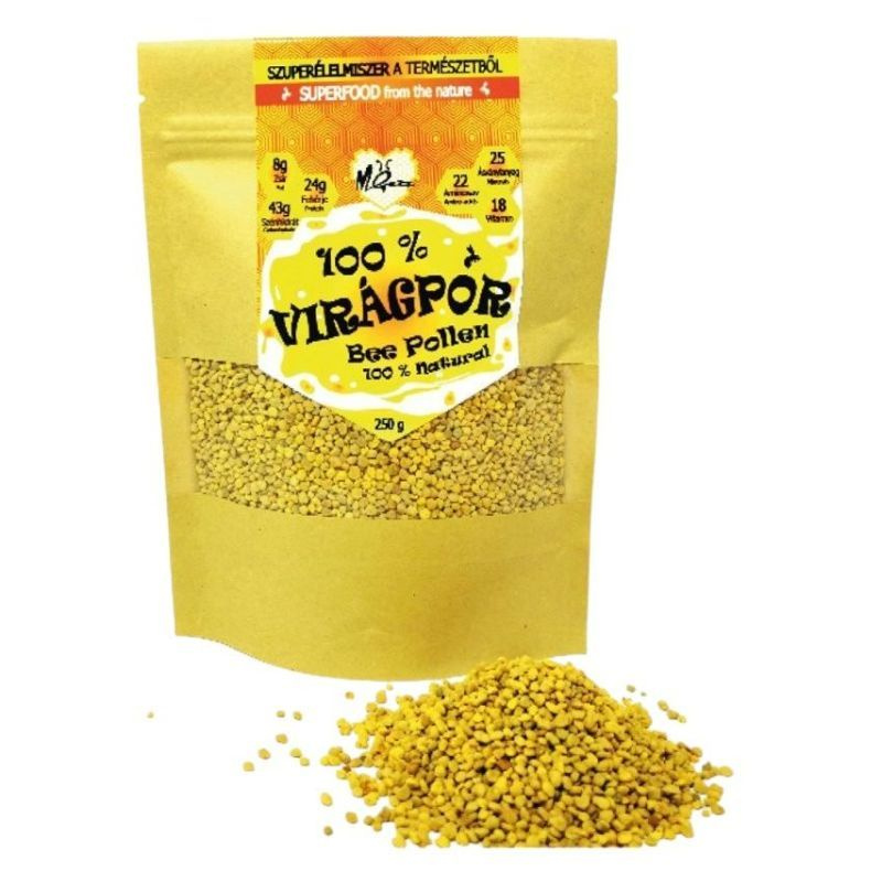 20g virágpor, kb. 900g zöldség és gyümölcs tápanyagának felel meg. A nyersrost kivételével minden szükséges tápelemet tartalmaz, mely az emberi szervezet számára szükséges a mindennapi, egészséges működéshez. A 22 ismert aminosavból 20 féle megtalálható benne. Vitaminokban leggazdagabb méhészeti termék, fehérjéket, cukrokat, zsírokat, ásványi sókat, hormonokat és enzimeket is tartalmaz. Gazdag karotinban, de magas a B-vitamin és a lecitin tartalma is.Ajánlott fogyasztása: Fogyassz egy kiskanállal naponta egyszer reggelihez.