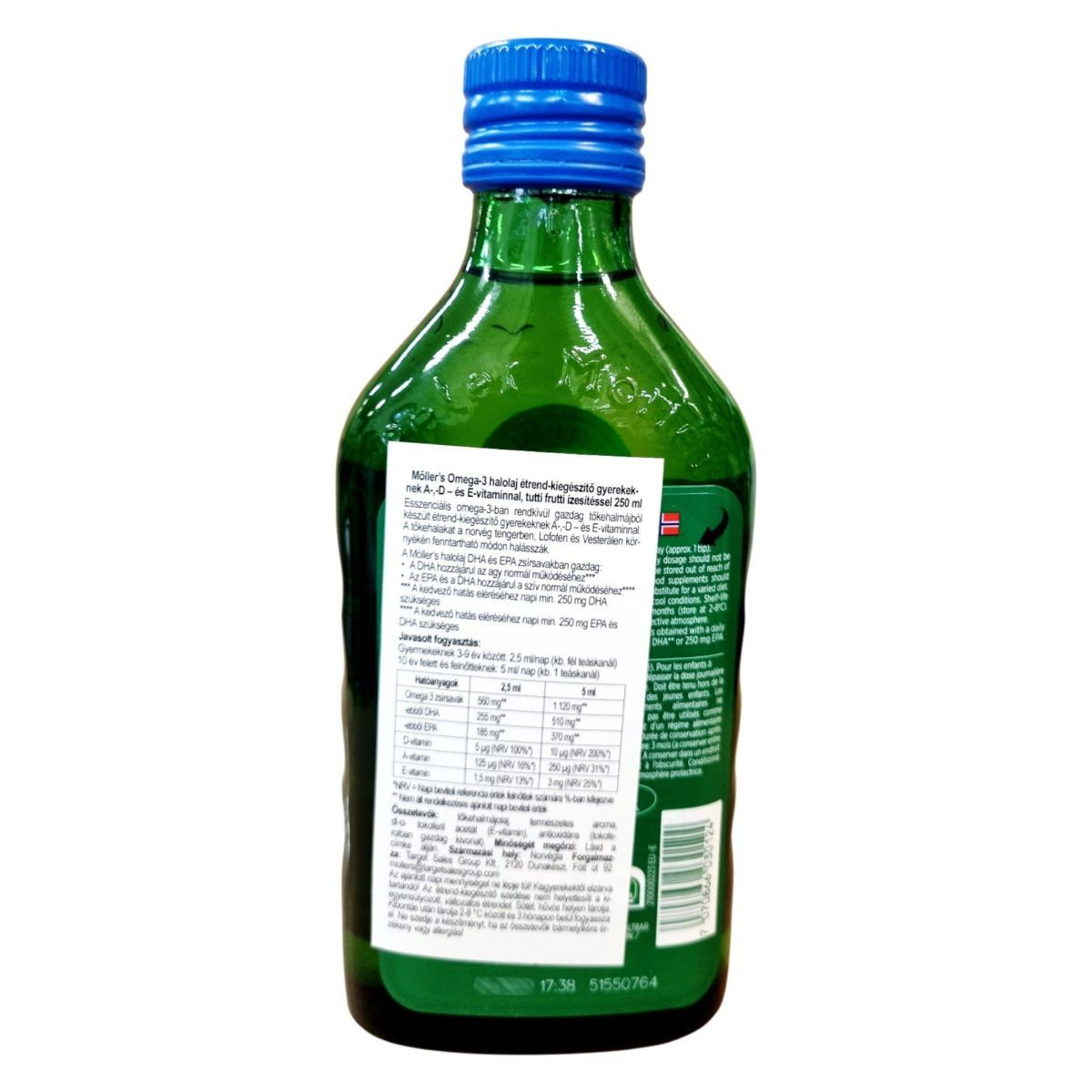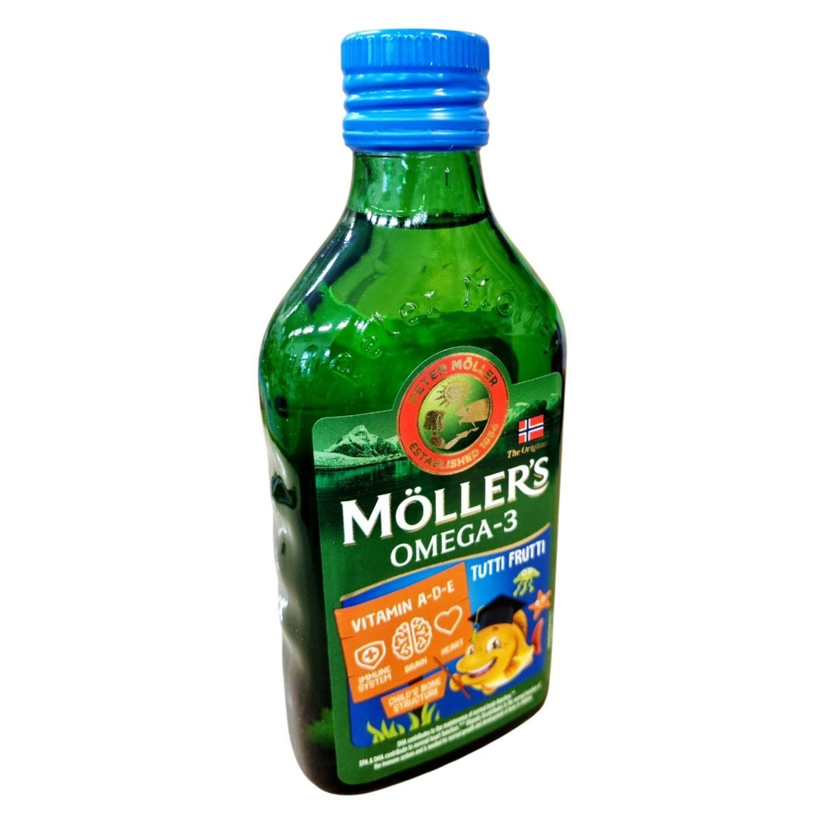 Möller’s Omega-3 halolaj étrend-kiegészítő gyermekeknek A-, D- és E-vitaminnal, tutti frutti ízesítéssel. Esszenciális omega-3-ban rendkívül gazdag tőkehalmájolajból készült. A tőkehalakat a norvég tengeren, Lofoten és Vesterålen környékén fenntartható módon halásszák. A DHA hozzájárul az agy normál működéséhez, az EPA és DHA hozzájárul a szív normál működéséhez, a D-vitamin pedig az immunrendszer normál működéséhez és a gyermekek csontozatának normál növekedéséhez és fejlődéséhez.