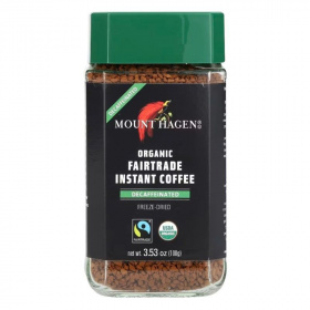 Összetevők ellenőrzött bigazdaságból: 100% azonnan oldódó koffeinmentes bio babkávé, fagyasztva szárított.
