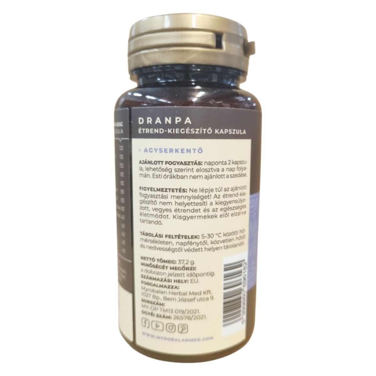 A DranPa egy 100% natúr, magyar termék, amely különböző gyógynövények kombinációját tartalmazza, mint például az ázsiai gázló, kislevelű bakopa és páfrányfenyő, amelyek hozzájárulhatnak a mentális teljesítmény támogatásához. A termék vegán és gluténmentes, nem tartalmaz mesterséges adalékanyagokat. Az ajánlott napi adag 2 kapszula, amelyet lehetőség szerint elosztva kell bevenni a nap folyamán. A termék tárolása 5-30 °C közötti hőmérsékleten javasolt, napfénytől és nedvességtől védett helyen.