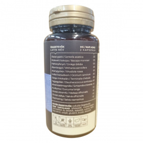 A Brahmi-bakopa (Bacopa monnieri) egy vízi élőhelyhez kötődő, adaptogén hatású gyógynövény, amely bacozidoknak nevezett triterpén-szaponinokat tartalmaz. Ezek a bioaktív vegyületek befolyásolhatják a kolinerg neurotranszmissziót és az idegsejtek közötti jelátvitelt, valamint antioxidáns tulajdonságokkal is rendelkezhetnek. Feltételezhetően hozzájárulhat a memória, a tanulási folyamatok és a mentális teljesítmény támogatásához, különösen tartós szellemi terhelés esetén. Emellett szerepet játszhat a stresszhez való alkalmazkodás elősegítésében. Hatása rendszerint fokozatosan alakul ki. Megfelelő dózisban általában jól tolerálható, de emésztőrendszeri panasz előfordulhat. Egyéni egészségügyi állapot vagy gyógyszerszedés esetén javasolt szakemberrel konzultálni.