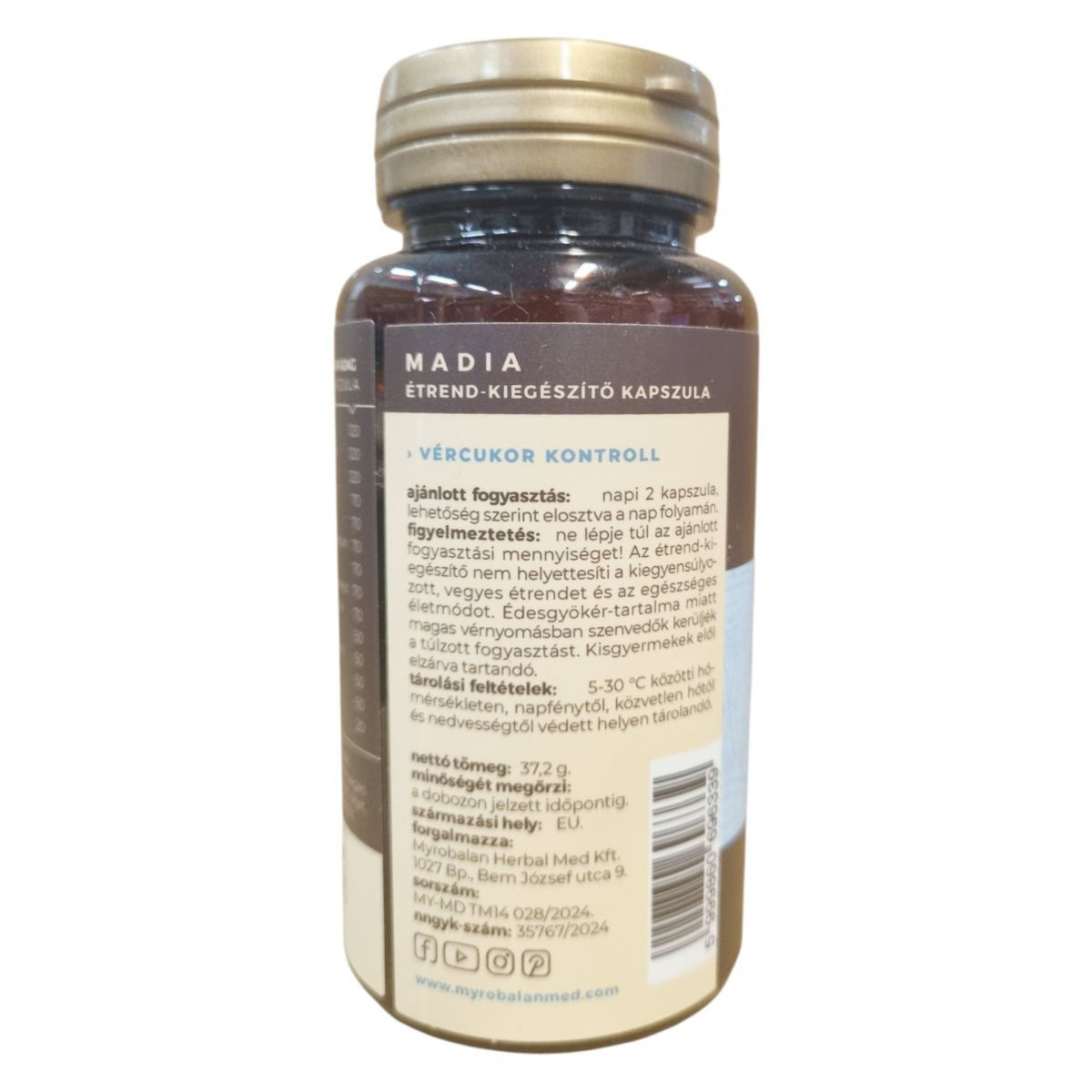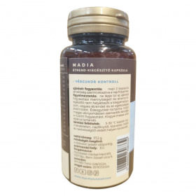A MaDia étrend-kiegészítő kapszula egy komplex gyógynövény-keverék, amelyet a vércukorszint szabályozásának támogatására fejlesztettek ki. A termék vegán, gluténmentes és tejmentes, így széles körben alkalmazható különböző étrendi igények mellett. A kapszulák olyan hatóanyagokat tartalmaznak, mint a gurmar, keserű dinnye és moringa, amelyek hozzájárulhatnak a vércukorszint egyensúlyának fenntartásához. A termék nem tartalmaz mesterséges színezékeket, ízesítőket vagy édesítőszereket, és 100% natúr összetevőkből áll. Fontos, hogy az ajánlott napi mennyiséget ne lépjük túl, és a terméket gyermekek elől elzárva tartsuk.