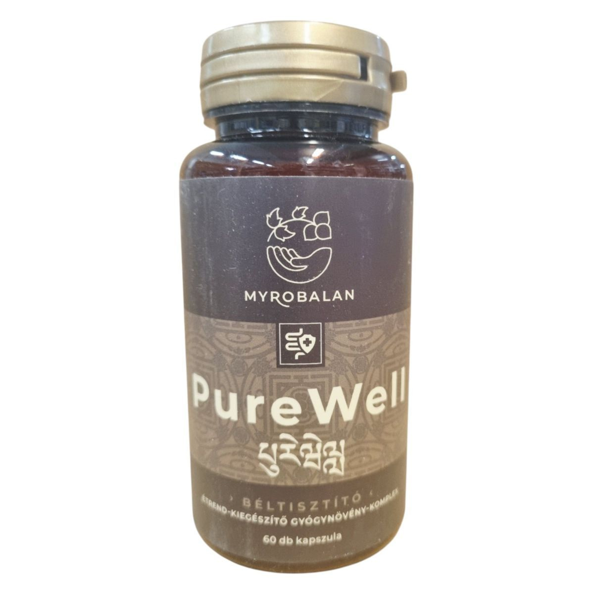 A PureWell bél tisztító étrend-kiegészítő gyógynövény-komplex, amely különböző növényi összetevőket tartalmazhat, mint például a bibhitaki, indiai egres és kínai rebarbara, amelyek hozzájárulhatnak az emésztőrendszer támogatásához.