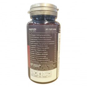 Álombogyó (Withania somnifera) 125 mg, Kislevelű bakopa (Bacopa monnieri) 97 mg, Hólyagmoszat (Fucus vesiculosus) 97 mg, Tajgagyökér (Eleutherococcus senticosus) 97 mg, Tengeri moszat (Ascophyllum nodosum) 97 mg, Aranygyökér (Rhodiola rosea) 69 mg, Édesgyökér (Glycyrrhiza glabra) 69 mg, Fekete mag (Nigella sativa) 69 mg, Szurokfű (Origanum vulgare) 42 mg, Gyömbér (Zingiber officinale) 42 mg, Kurkuma (Curcuma longa) 33 mg, Bibhitaki (Terminalia bellirica) 33 mg, Indiai egres (Phyllantus emblica) 33 mg, Sárga mirabolán (Terminalia chebula) 33 mg