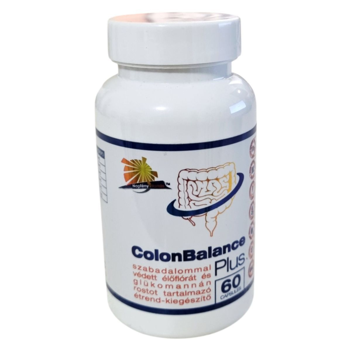 A Napfényvitamin™ ColonBalance egy szabadalommal védett élőflórát és glükomannán rostot tartalmazó étrend-kiegészítő, amely kapszulánként 26 milliárd élő probiotikus baktériumot tartalmazhat. Támogathatja az emésztőrendszer egészségét és a bélflóra egyensúlyát.