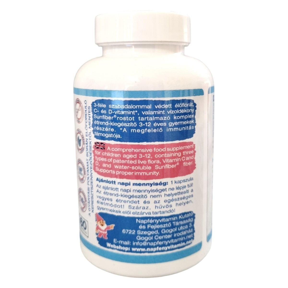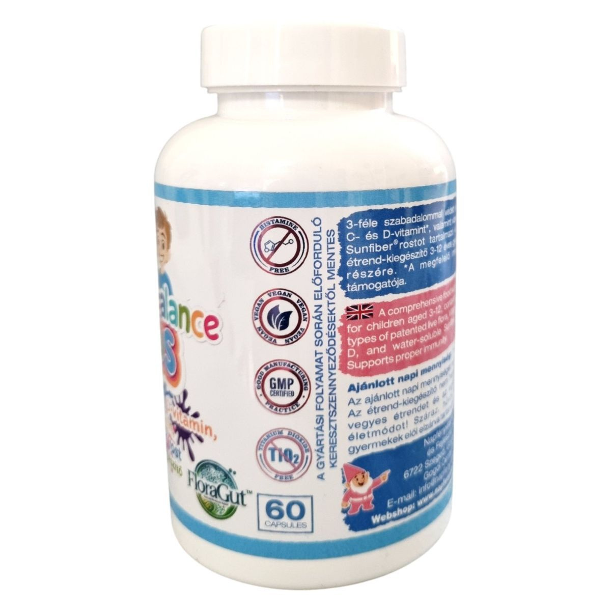 A FloraGut™ KiDS egy speciálisan 3-12 éves gyermekek számára kifejlesztett étrend-kiegészítő, amely háromféle szabadalommal védett élőflórát, C- és D-vitamint, valamint vízoldékony Sunfiber® rostot tartalmaz. A termék célja, hogy támogassa a gyermekek megfelelő immunitását. A termék vegán, TiO2 mentes, és a gyártási folyamat során előforduló keresztszennyeződésektől mentes. A kapszulák száraz, hűvös helyen, gyermekek elől elzárva tartandók. Az ajánlott napi mennyiséget ne lépje túl, és az étrend-kiegészítő nem helyettesíti a vegyes étrendet és az egészséges életmódot.