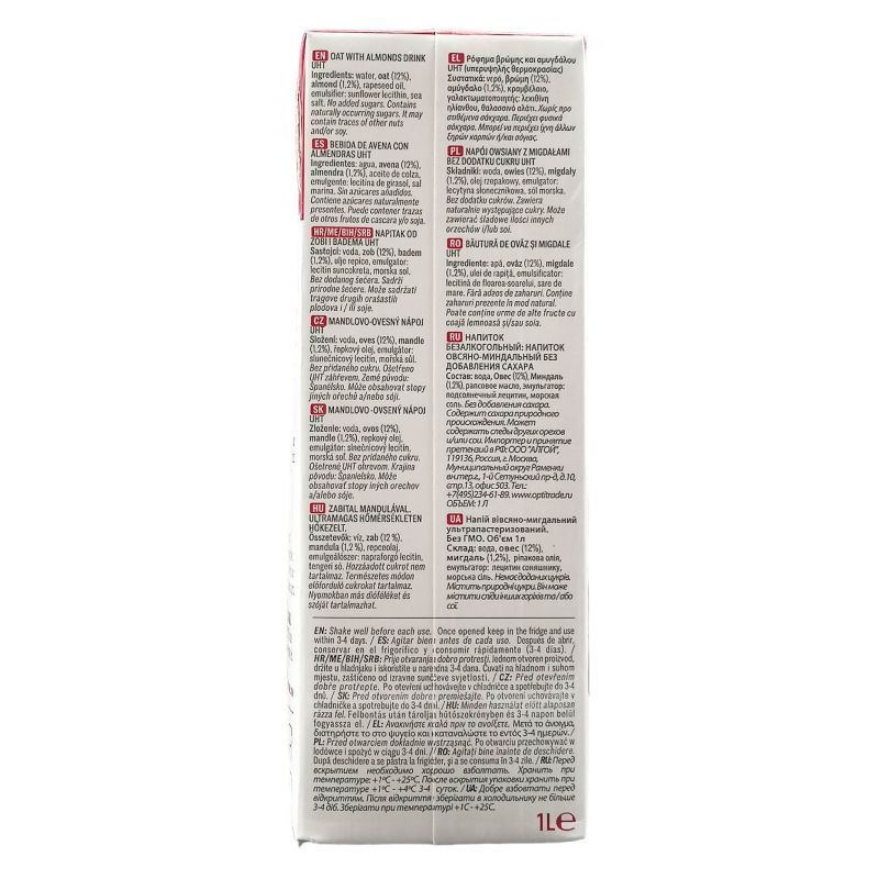Cukormentes növényi ital zab és mandula felhasználásával, semleges ízvilágú, főzéshez és italfogyasztáshoz is alkalmas.