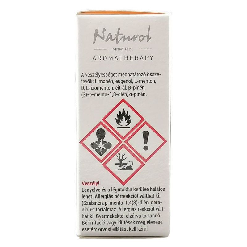 Veszély! Lenyelve és a légutakba kerülve halálos lehet. Allergiás bőrreakciót válthat ki. (Szabinén, p-menta-1,4(8)-dién, geraniol)-t tartalmaz. Allergiás reakciót válthat ki. Gyermekektől elzárva tartandó. Bőrirritáció vagy kiütések megjelenése esetén: orvosi ellátást kell kérni.