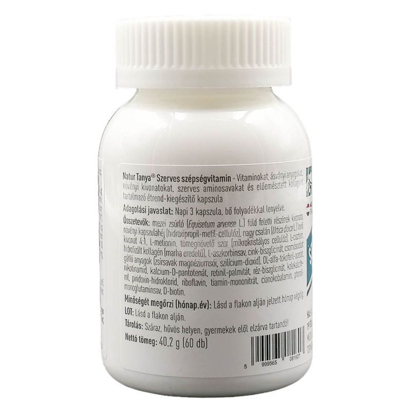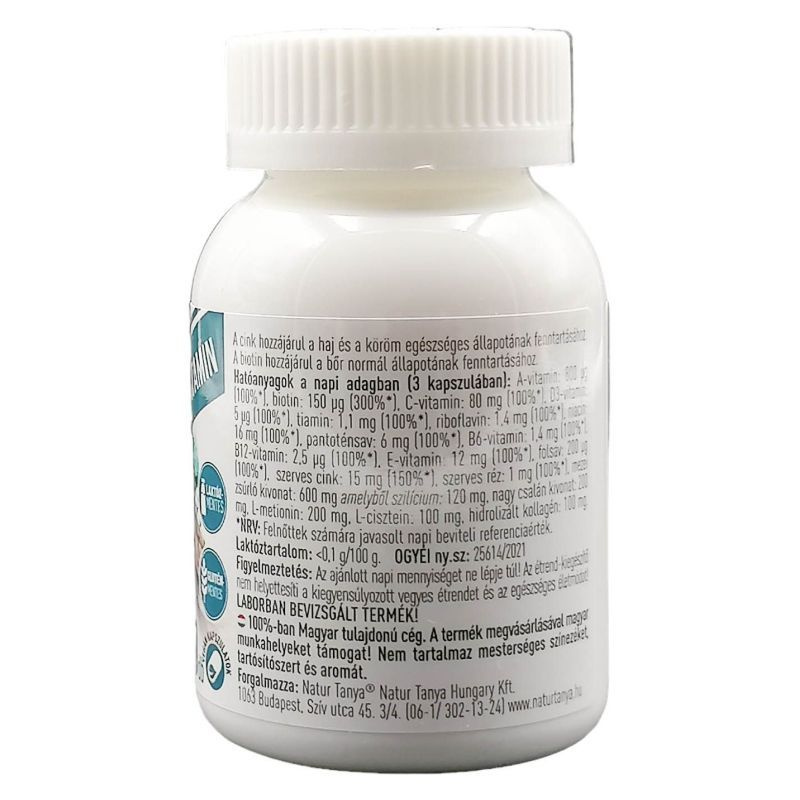 Natur Tanya® Szerves SZÉPSÉGVITAMIN 19 féle bioaktív összetevő hajhullás, hajritkulás ellen, a bőr szépségére és körmök egészségére, vegán kapszulatokban.