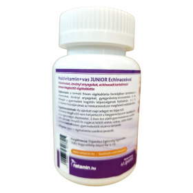 A Netamin Multivitamin+vas JUNIOR Echinaceával egy finom rágótabletta formájában kínál vitaminokat, ásványi anyagokat és gyógynövény-kivonatokat, amelyek hozzájárulhatnak az immunrendszer megfelelő működéséhez. A termék különösen gyermekek számára készült, és 3 éves kortól ajánlott. A termék bio étrendi irányzatot követ, és számos fontos vitamint és ásványi anyagot tartalmaz, mint például C-vitamin, vas, B-vitaminok, A-vitamin, biotin, kolin, echinacea-kivonat, keserű narancs por és porított lenmag olaj. Az összetevők között megtalálható a szorbitol, cukor, kalcium-hidrogén-foszfát és számos más fontos anyag. A termék forgalmazója az Organikus Egészség Egyesület.
